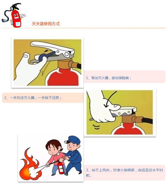 使用滅火器時(shí),一定要注意檢查滅火器氣壓表,防止滅火器罐使用不當導致爆炸!