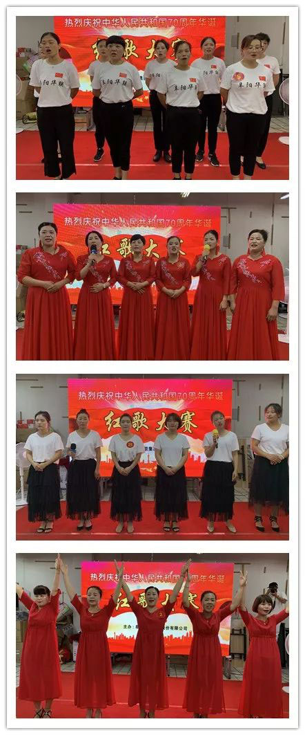 一首紅歌一面旗,一支紅曲一把號。為熱烈慶祝中華人民共和國70周年華誕,弘揚革命傳統,汲取奮進(jìn)力量,引領(lǐng)社會(huì )風(fēng)尚。撫昔思今、飲水思源,激發(fā)大家的愛(ài)國愛(ài)黨熱情,增強集體向心力、凝聚力和意志力,培養活潑健康的精神風(fēng)貌,阜陽(yáng)華聯(lián)集團于8月8日—11日舉辦“2019紅歌大賽”