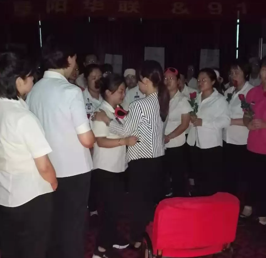 培訓接近尾聲的時(shí)候,敬愛(ài)的樊總來(lái)到我們身邊,為我們揭下眼罩!那一刻,很多人留下了眼淚,在這樣溫暖的大家庭里工作,很幸福,很幸運!千言萬(wàn)語(yǔ)匯成一個(gè)溫暖的擁抱