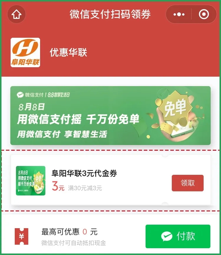 阜陽(yáng)華聯(lián) × 微信支付|88智慧生活日來(lái)襲,大量?jì)?yōu)惠福利等你Pick~