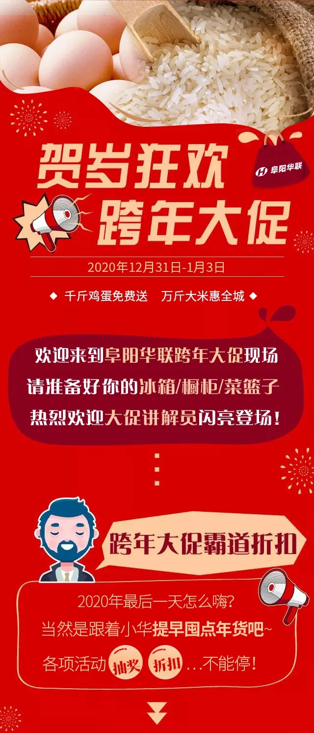 跨年大促|(zhì)阜陽(yáng)華聯(lián)“千斤雞蛋免費送/萬(wàn)斤大米惠全城”