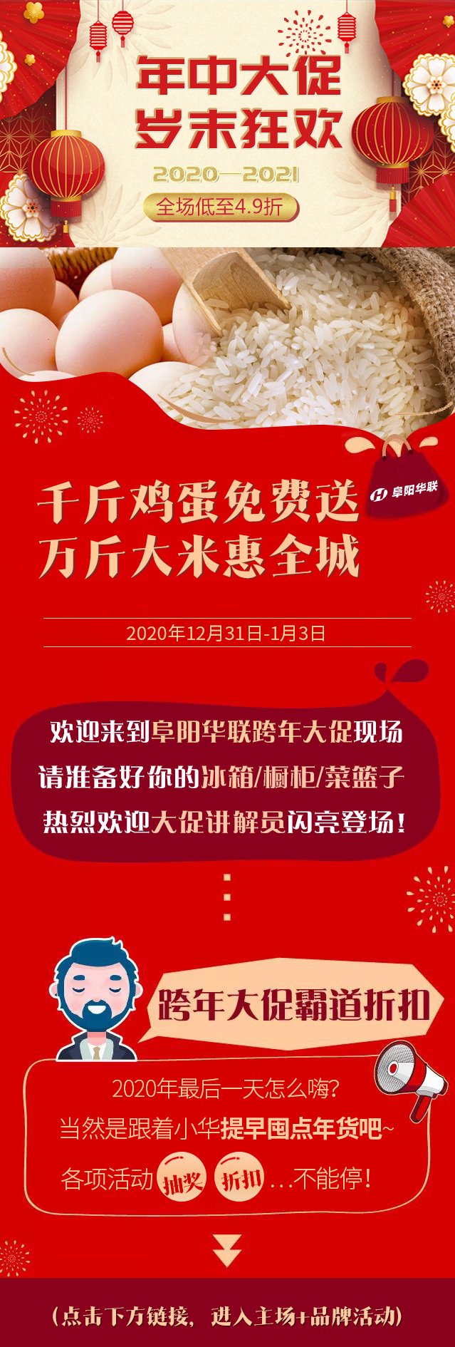 跨年大促|(zhì)阜陽(yáng)華聯(lián)“千斤雞蛋免費送/萬(wàn)斤大米惠全城”