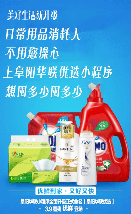 隨著(zhù)阜陽(yáng)華聯(lián)優(yōu)選小程序的升級,涵蓋常生活所需的生鮮熟食、米面糧油、日用百貨