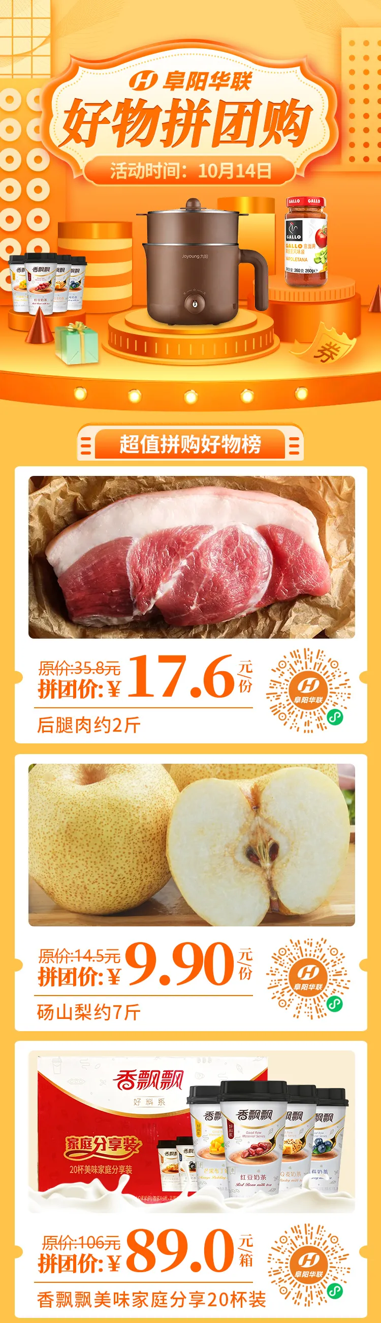 開(kāi)搶 | 10月14日阜陽(yáng)華聯(lián)優(yōu)選「好物拼團」,全場(chǎng)爆款!