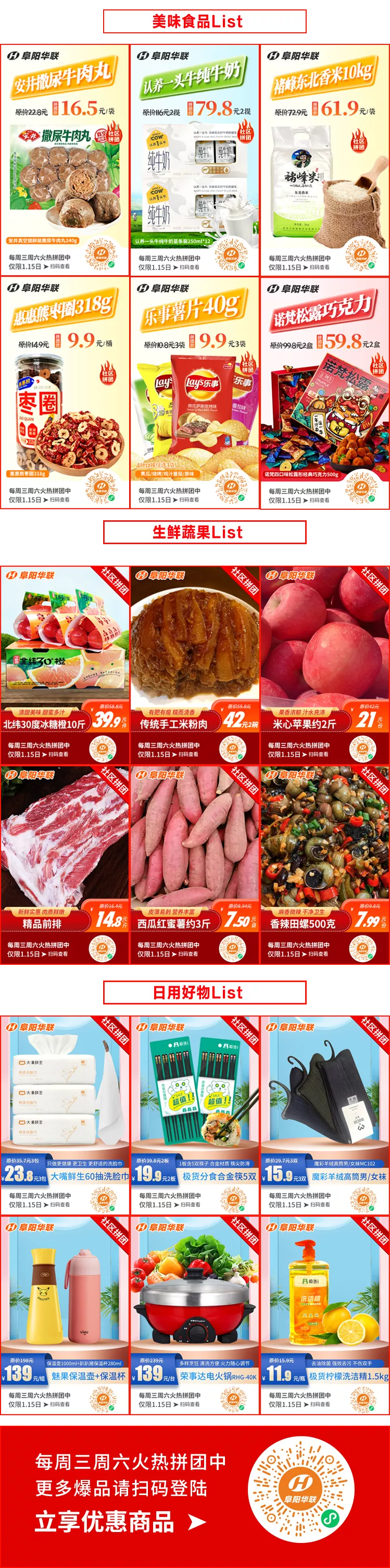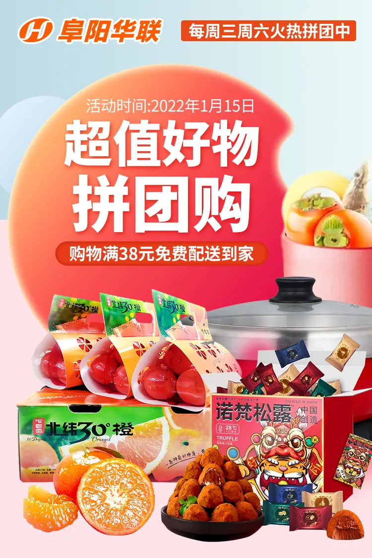 阜陽(yáng)華聯(lián)優(yōu)選 ①·?拼團,主推>>年貨美食、保暖好物…